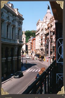 We got the last room in a little hotel that rocks, the Hotel Arriaga, in the Casco Viejo district. It had antique finished rooms, and a secured garage for the bikes. And it was a bargain for a big city, at about $60 a night. The innkeeper, a sweet older lady named Nieves, offered to do our laundry. We must've looked like we badly needed it! Bilbao was my favorite big city. Bilbao is a city on the verge of transitioning from a beat-up, grimy shipbuilding and maritime centre of Spain, to a burgeoning hub of technology and design based commerce. After years of letting a dying resource-based economy kill off any hope for the future, the Basque Government is actively carrying out huge programs that have led to an economic reinaissance. |